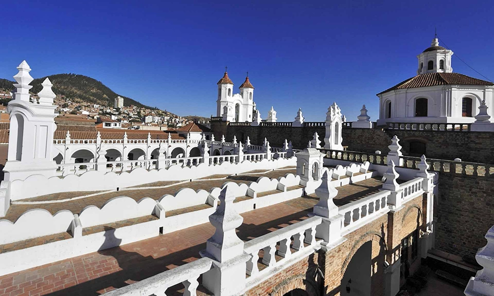Las terrazas son famosas porque permiten caminar sobre los techos coloniales y obtener una de las mejores vistas panorámicas del centro histórico de Sucre, algo poco común en iglesias coloniales.